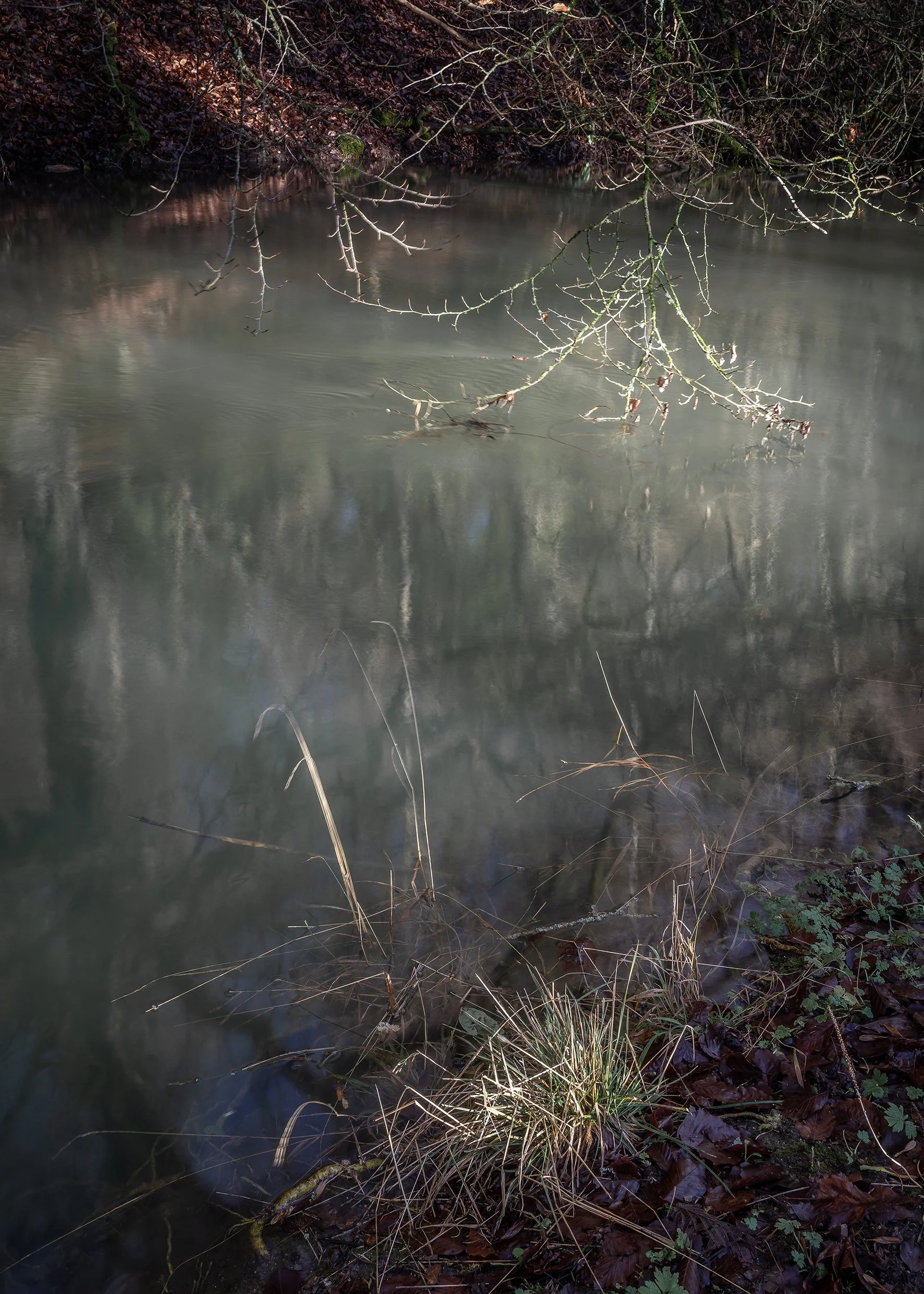 “For the past three years or so, in all weathers and seasons, I have walked from my door, down through the valley and along the route of the derelict canal that runs beside the river. This is a wild and untamed hollow, where the water seeps and spills from the canal’s collapsed sides, and abandoned locks create stoppages and blockages along the valley floor. The canal’s collapse is a wildness of reeds and weeds, yellow flag iris, saplings, catkins, beech mast, lichen, and old man’s beard. In winter floodwaters creep and spread, and the deep cold in the valley bottom traps the frost, low winter sun sending mist drifting upwards through the woods that cling to the steep hillsides.