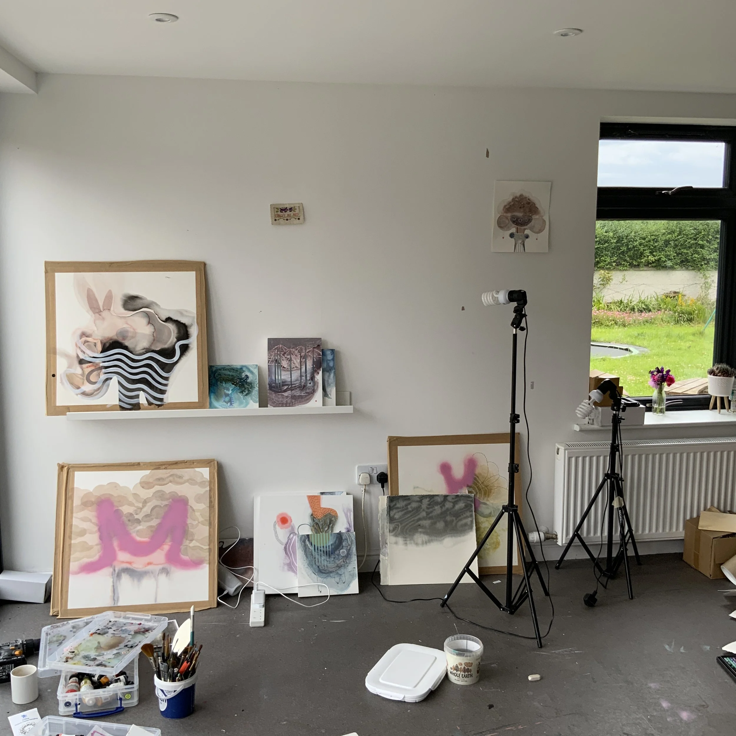 Her paintings, for the most part, are about memories. She uses natural form, landscape as a basis for her work. Within this space she creates a pathway to memories. Sometimes creating a quiet space and other times trying to follow a thread of memory to recall other details. Creating this space is a reaction to the overwhelming noise of everyday life. The small hidden worlds in nature, for example the mini ecosystems found within rock pools and forests, allow me to portray a representation of protection, to describe the need to protect our families, ourselves and our environment.