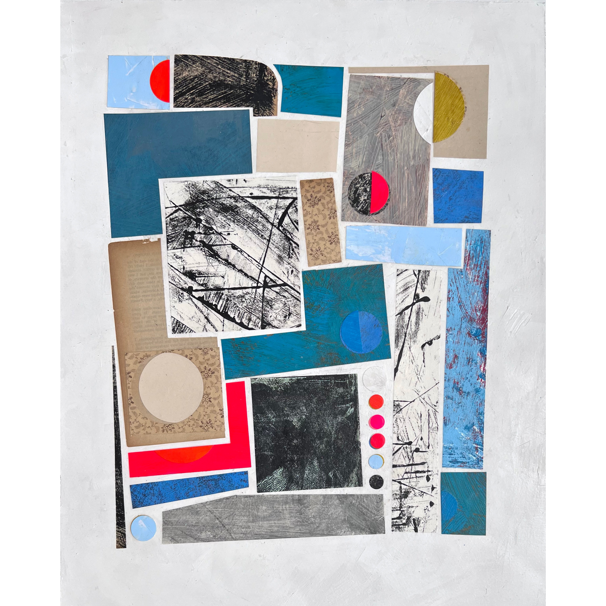 My practice has moved away from purely painting for the time being, to explore the possibilities of combining printed materials with coloured and sometimes heavily textured papers I create; however with my love of paint and mark-making I foresee paint always being the dominant factor in what I do.”