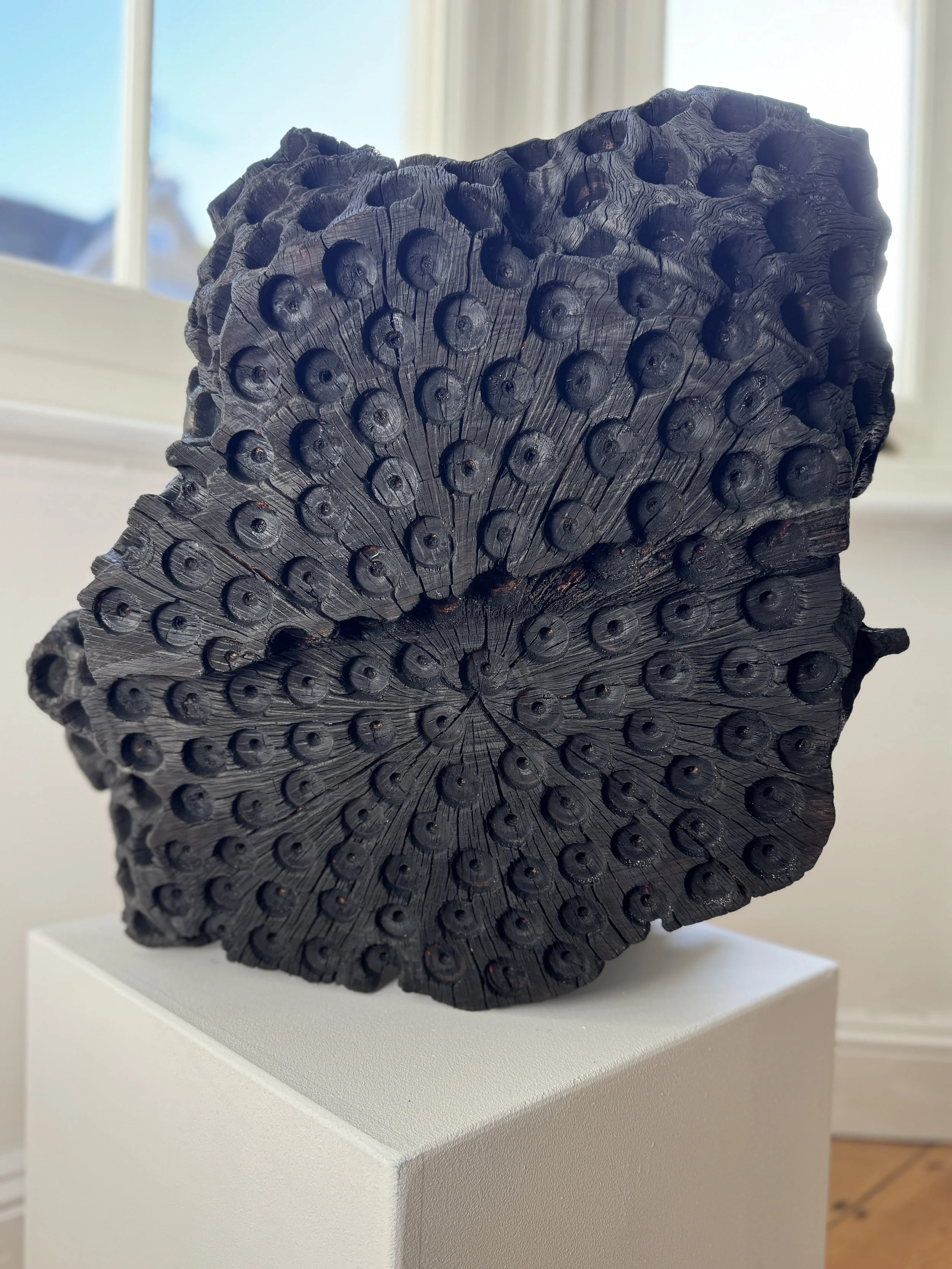 An element of repetition has emerged in the new wooden sculptures I’ve made over the past year, echoing the rhythmic patterns found in the natural world - the tides, the erosion, the weathering of surfaces over time. These recurring forms speak to both continuity and loss.