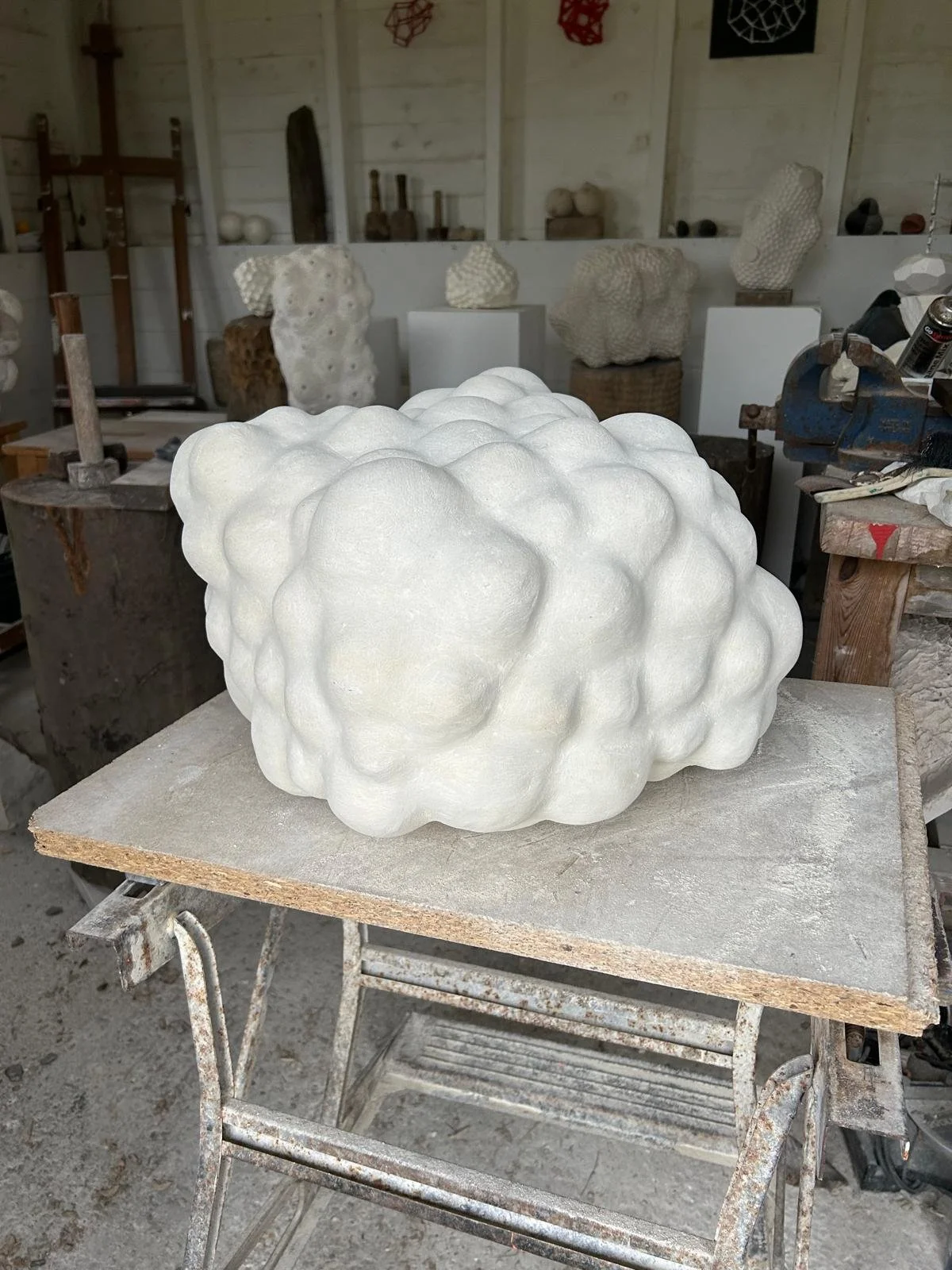 Heavily influenced by nature, Lawrence takes natural phenomena in general, and cellular structure in particular, amongst his sources of inspiration. Living on the Sussex coast, daily walks to the beach and close observation of the sea and the coastline subconsciously filter through to his work, though it is not about that. There is fluid repetition in Lawrence's sculptures, setting off a rhythm which flows between all works and connects them as a whole. The rhythm of the tide is there together with the eroding effect that sea and time have on rocks, smoothing, hollowing, and pitting their surfaces.